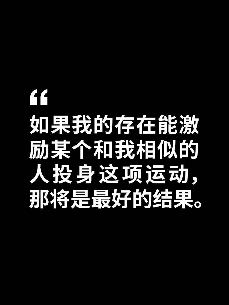 老实说还不确定。我对这项运动怀有爱恨交织的情感,毕竟在如此短的时间里经历了太多。同时我对网球给予我的所有机遇心怀感激。如果我的存在能激励某个和我相似的人投身这项运动,那将是最好的结果。这也会让我渴望在退役后继续为这项运动贡献力量。
