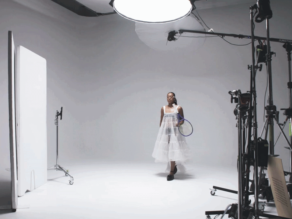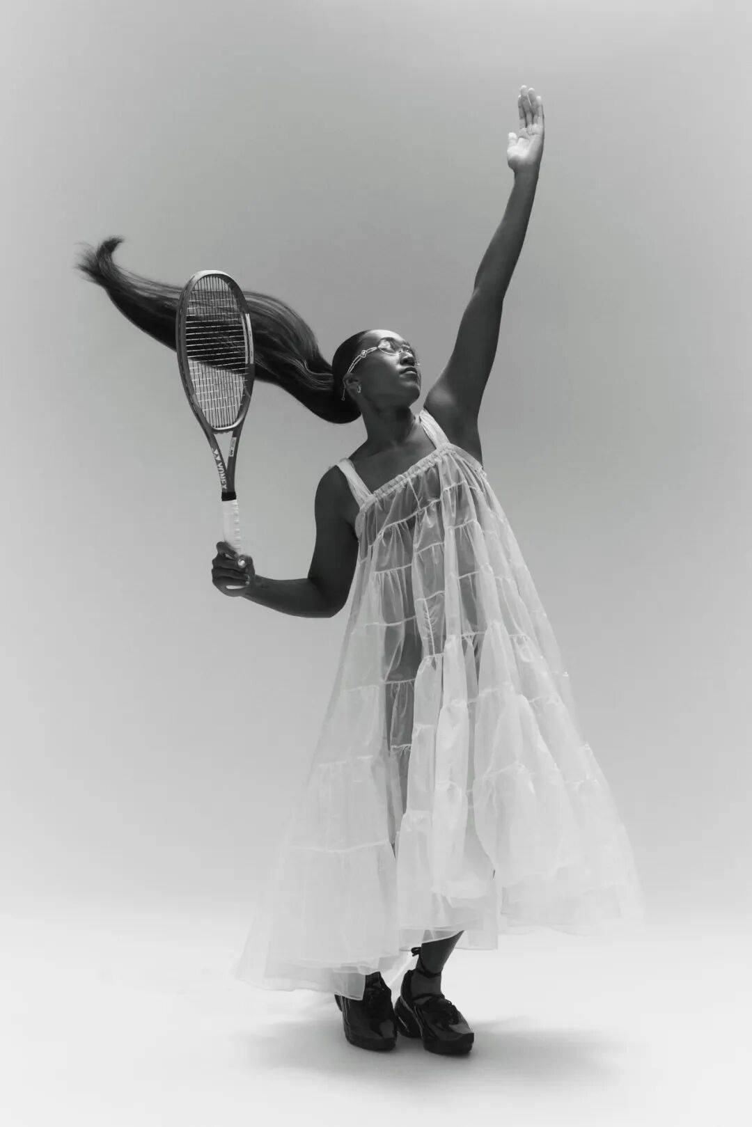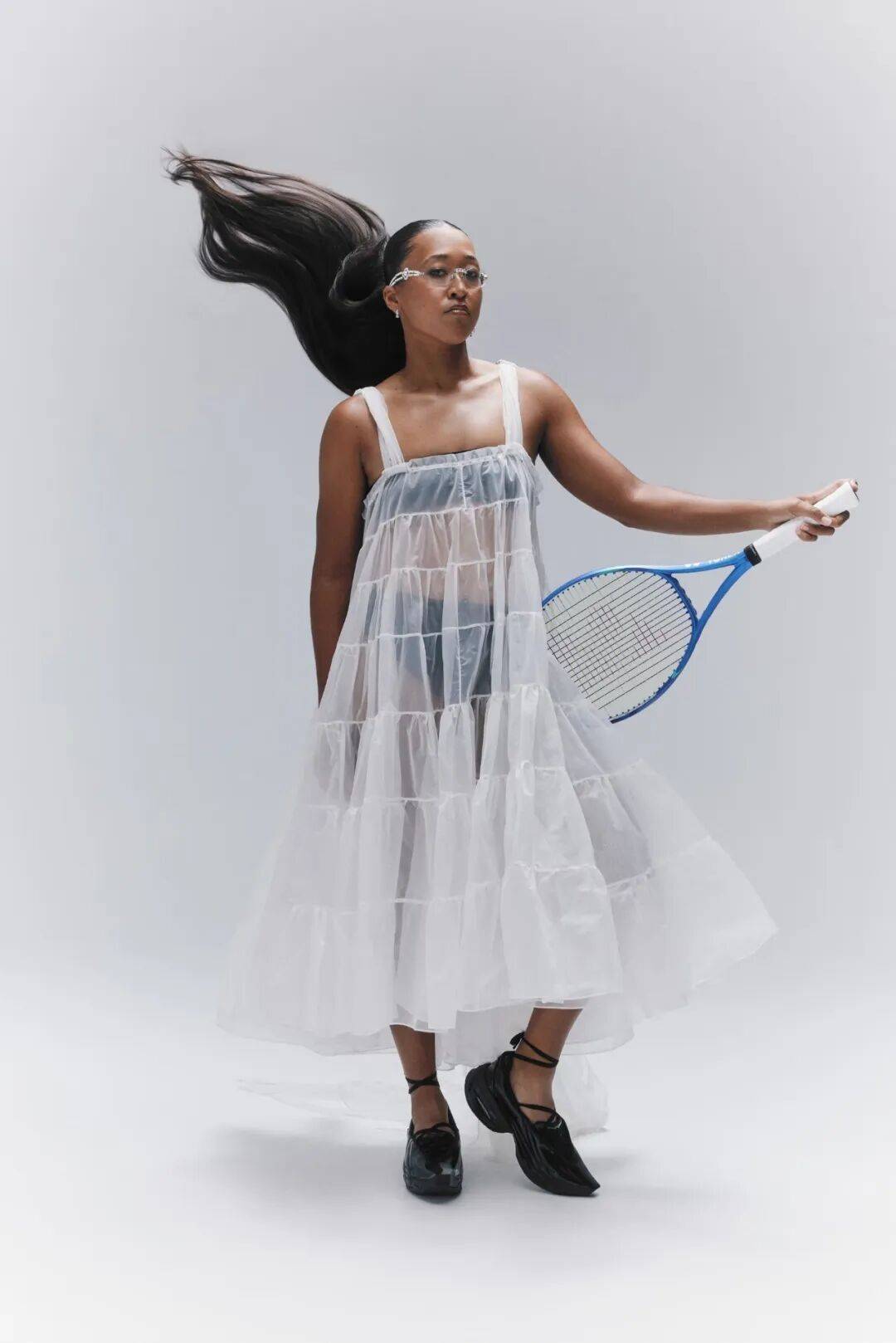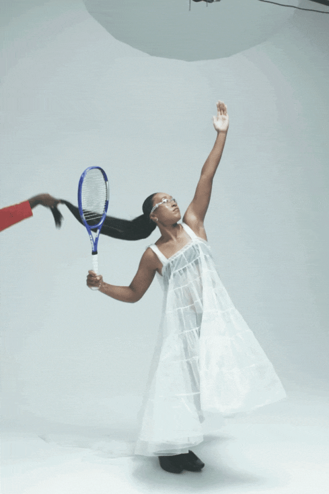 老实说我完全认同。那套造型确实让我顿悟——原来可以更真实地展现自我。其实早在那之前,我的着装就略有不同于传统网球服,但当时并未彻底突破。而与 Yoon 合作时,我深深着迷于她的个人风格,只想全力呈现出最完美的诠释。我们共同的日本文化背景也促成了这次合作。这让我明白:现实生活中我确实有些内向,但当我穿着精美的服装踏上球场时,完全不必拘谨。